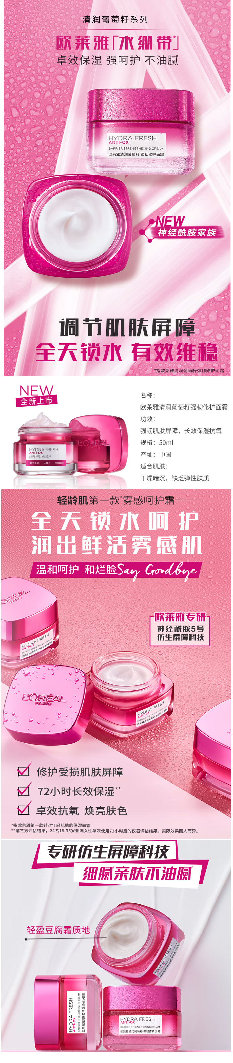 欧莱雅清润葡萄籽强韧修护面霜50ml