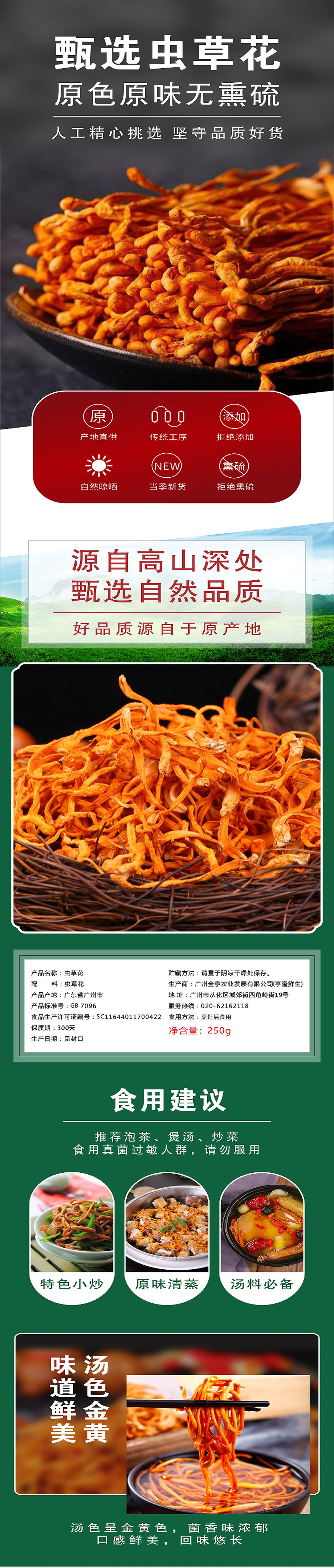 亨隆鲜生虫草花250g